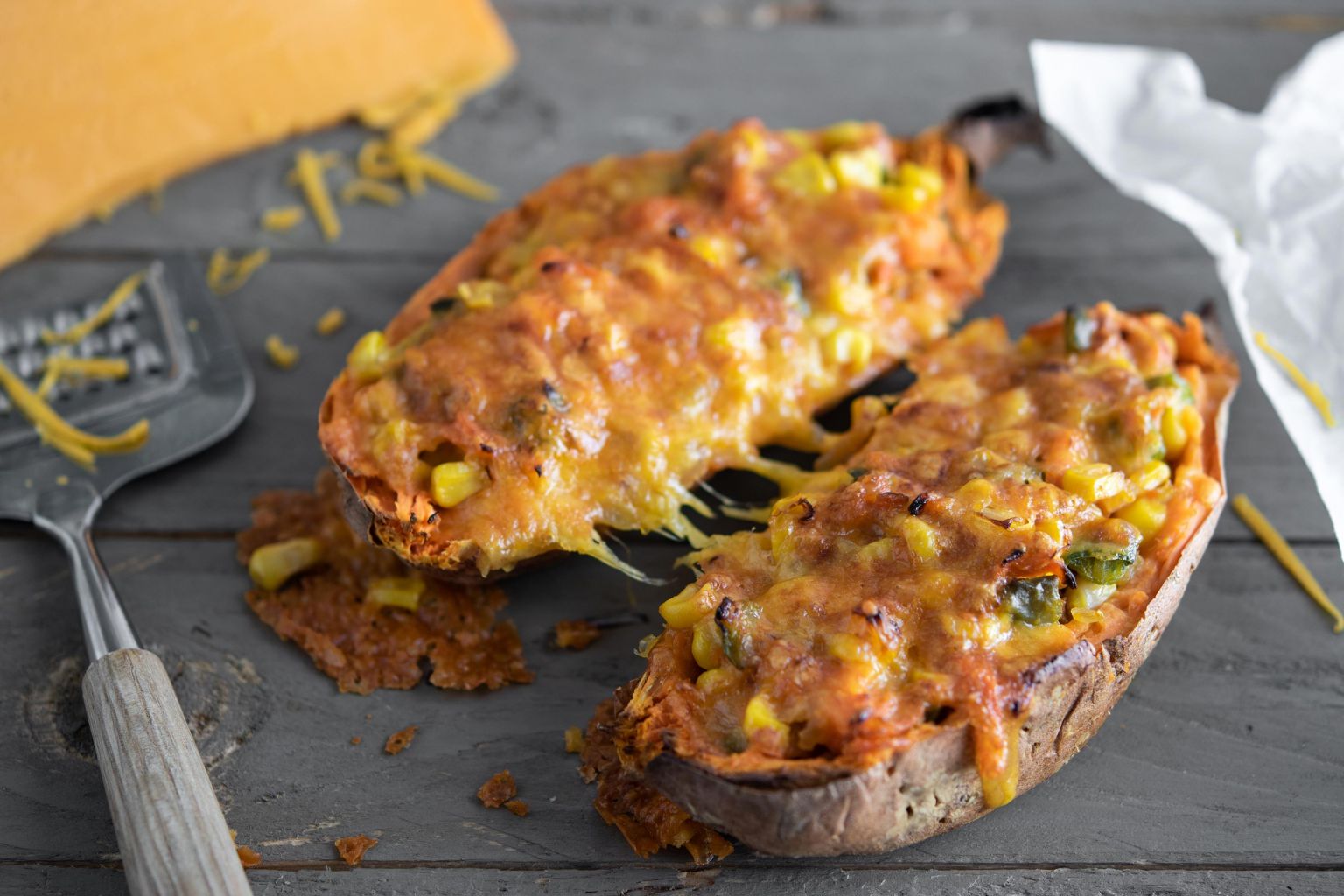 Recette Patate douce farcie au poivron et cheddar - Quitoque